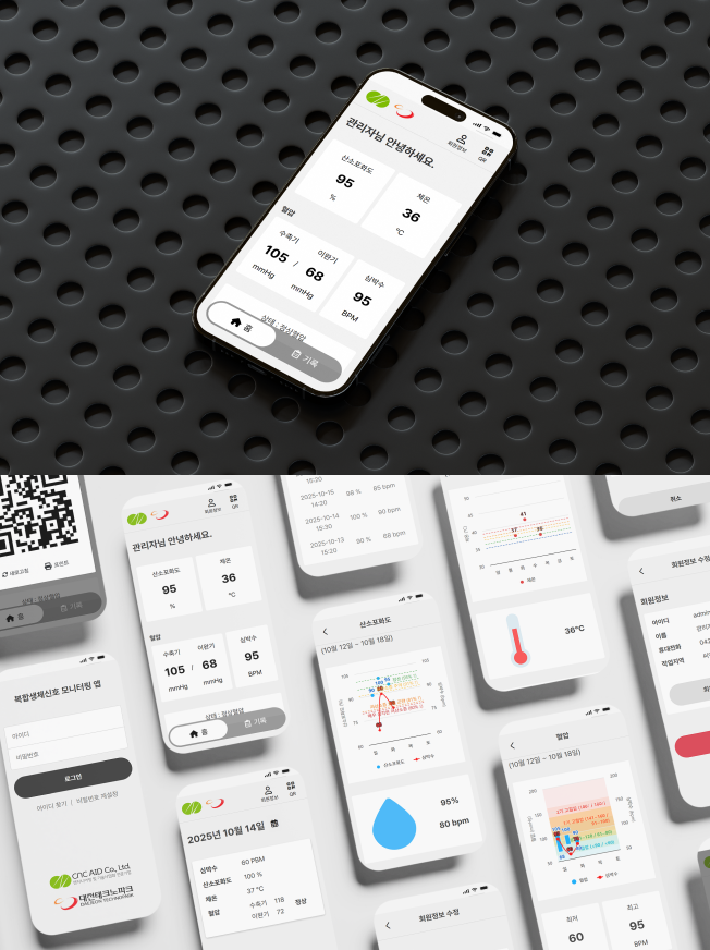 측정된 데이터는 서버와 실시간으로 연동되어 관리자 페이지에서 즉시 확인할 수 있으며, 근로자도 앱을 통해 자신의 건강 상태 및 측정 결과를 실시간으로 확인할 수 있습니다.